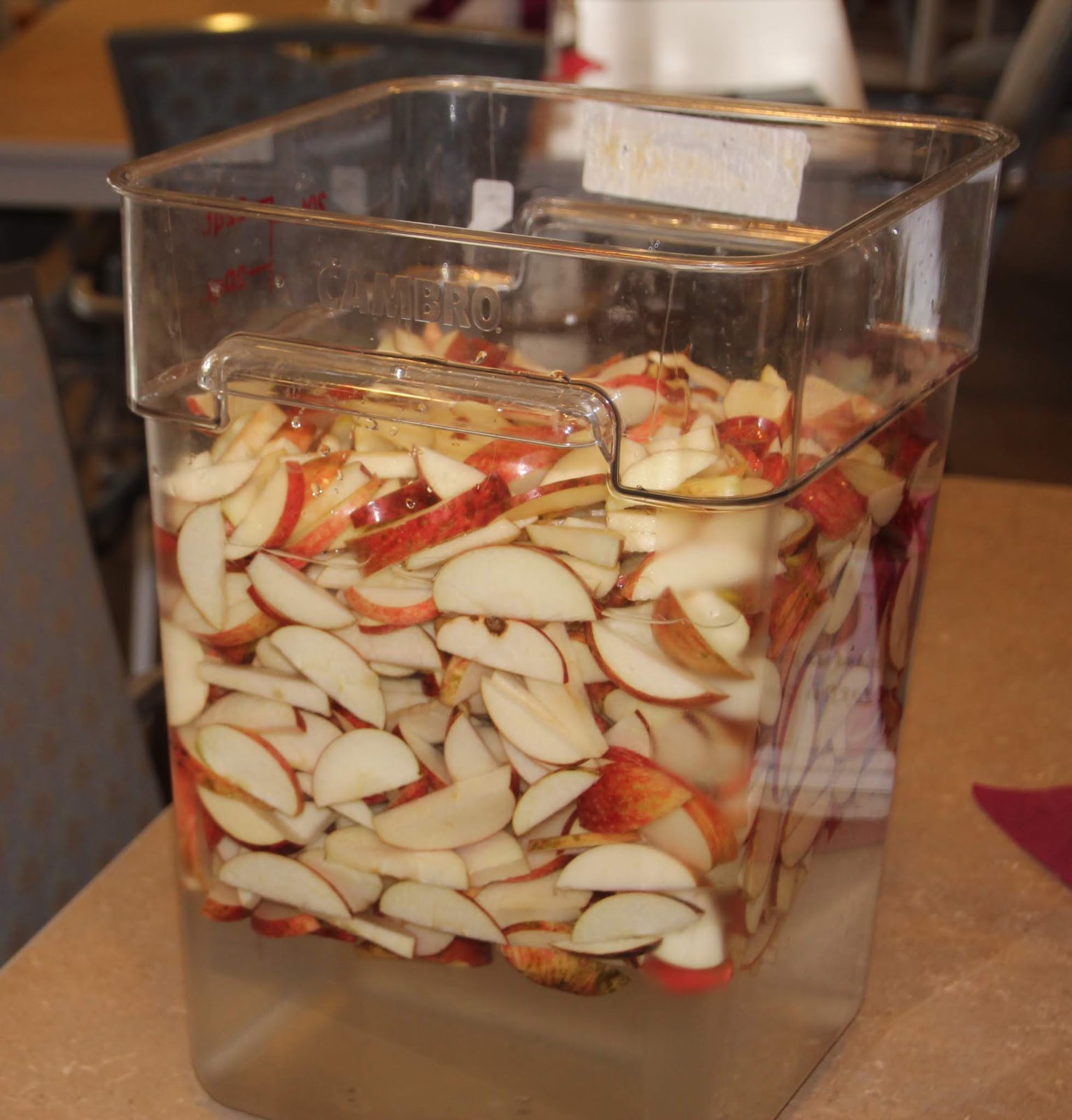 One of the rules of St. Benedict that is observed by Benedictines is that everybody works. Chef Victoria demonstrated how to hold knives and how to cut onions, carrots, and vegetables. The large container of apples is the result of about 10 minutes of effort by us. If you want to know more about the retreat I just attended, read last Sunday's explanation here.