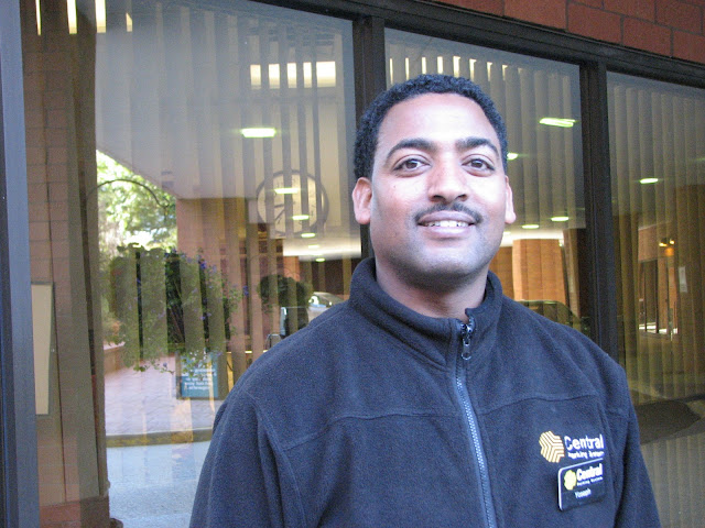 Joseph is the valet at the entrance to United Hospital in St. Paul. When he saw me taking photos of a sculpture in front of the hospital, he approached me and asked to see my camera. He in turn proudly showed me a picture of his son on his camera. Joseph is from Ethiopia and has been in the United States here in St. Paul for two years. I wish that I could speak another language, ANY language, as well as he speaks English!